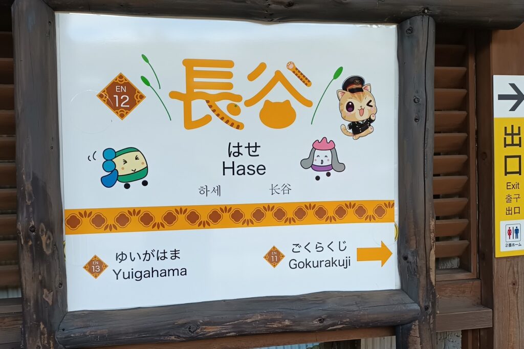 On the middle day of this holiday weekend, we went to Kamakura getting on a train. We got out of the west exit of JR. Kamakura station. We had matcha Ice cream corns at a shop near the exit. The small square in front of the shop was crowed with holiday makers. We started walking the road along the city hall toward Hase Temple. On the way, we turned to left into a small road through a quite residential neighborhood. Cars and bikes were passing us in a narrow road. I heard the sound of jet engines coming from the hill . Within a few minutes, I saw a Boeing 737 jet coming out from the other side of the mountain nearby and flying low above us toward west, which I later learned is a C40A, a military version of Boeing 737, transport aircraft of the US Navy heading to Atsugi Naval air-station. I’ve been to Kamakura and visited the Great Buddah many times. But we’ve never visited Hase Temple before though it is just around the corner. We run into a larger road which reaches to the beach. There were a lot of people walking on the side road. I think they are on the way to Enoden Hase station after visiting Kotokuin temple, famous for Great Buddha. This time, we would go to Hase temple skipping the Daibutsu sama, the Buddha. The temple, the 4th temple of the Bando Pilgrimage circuit, is known for the ten meter high standing statue of the Eleven-headed Bodhisattva of Compassion. I was simply blown away by the shining gold statue in the hall. We stopped by a music box shop near the temple, which displays large selection. I met a music box of Porco Rosso doll, which I have somewhere in the closet. We were supposed to walk around the area. However, we decided to go to Enoshima after we left Hase Temple. We headed to Hase Station.